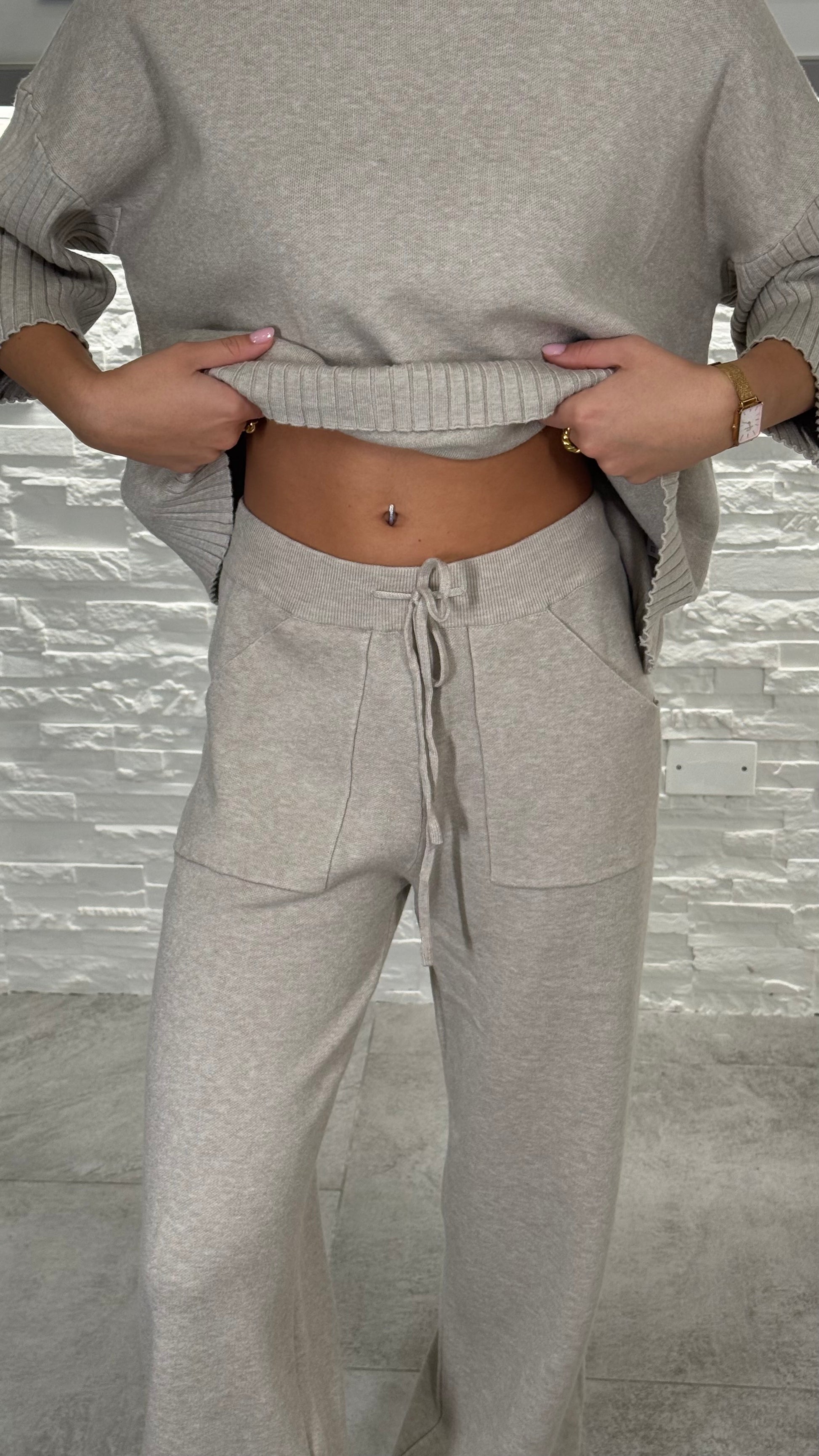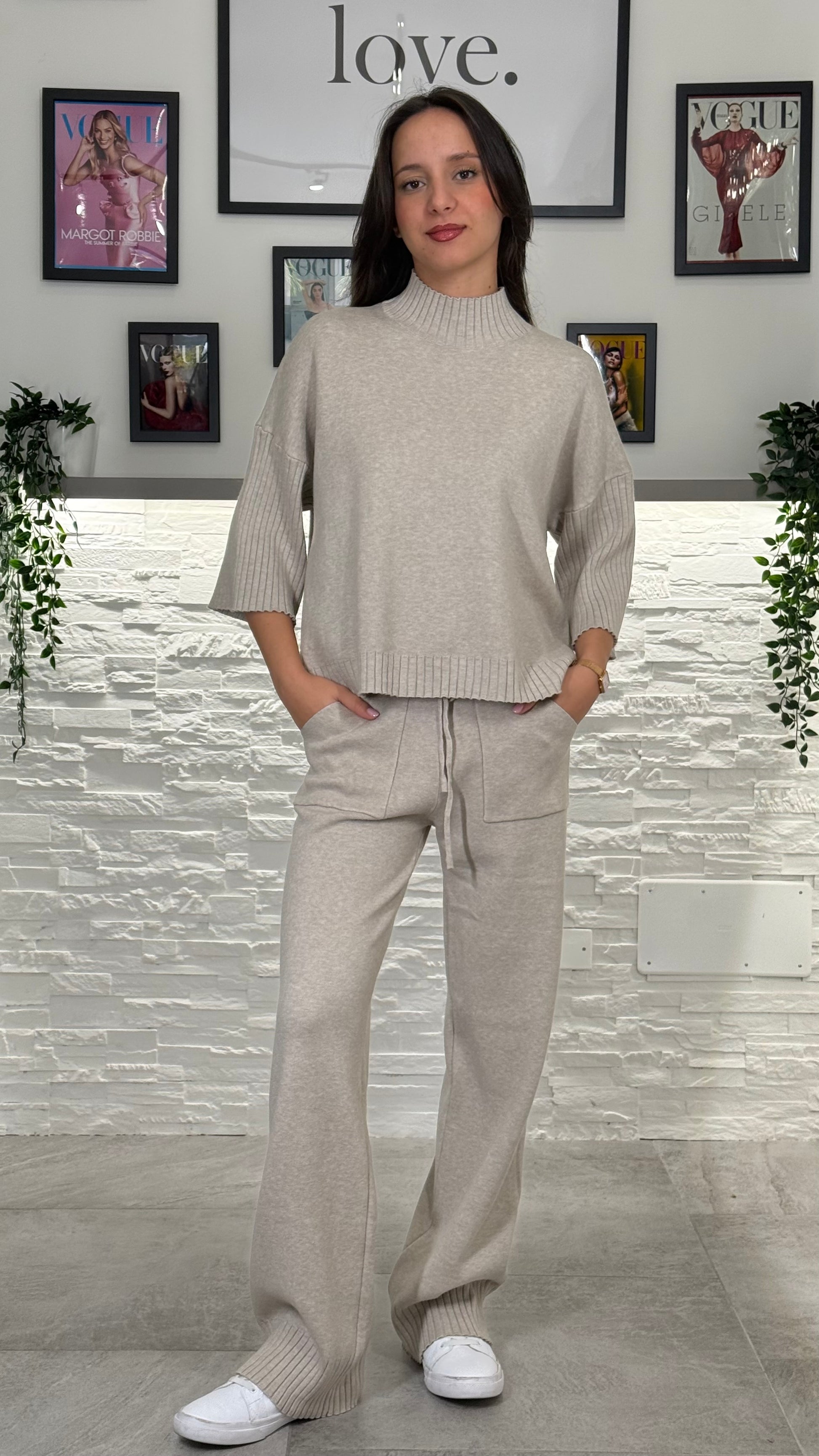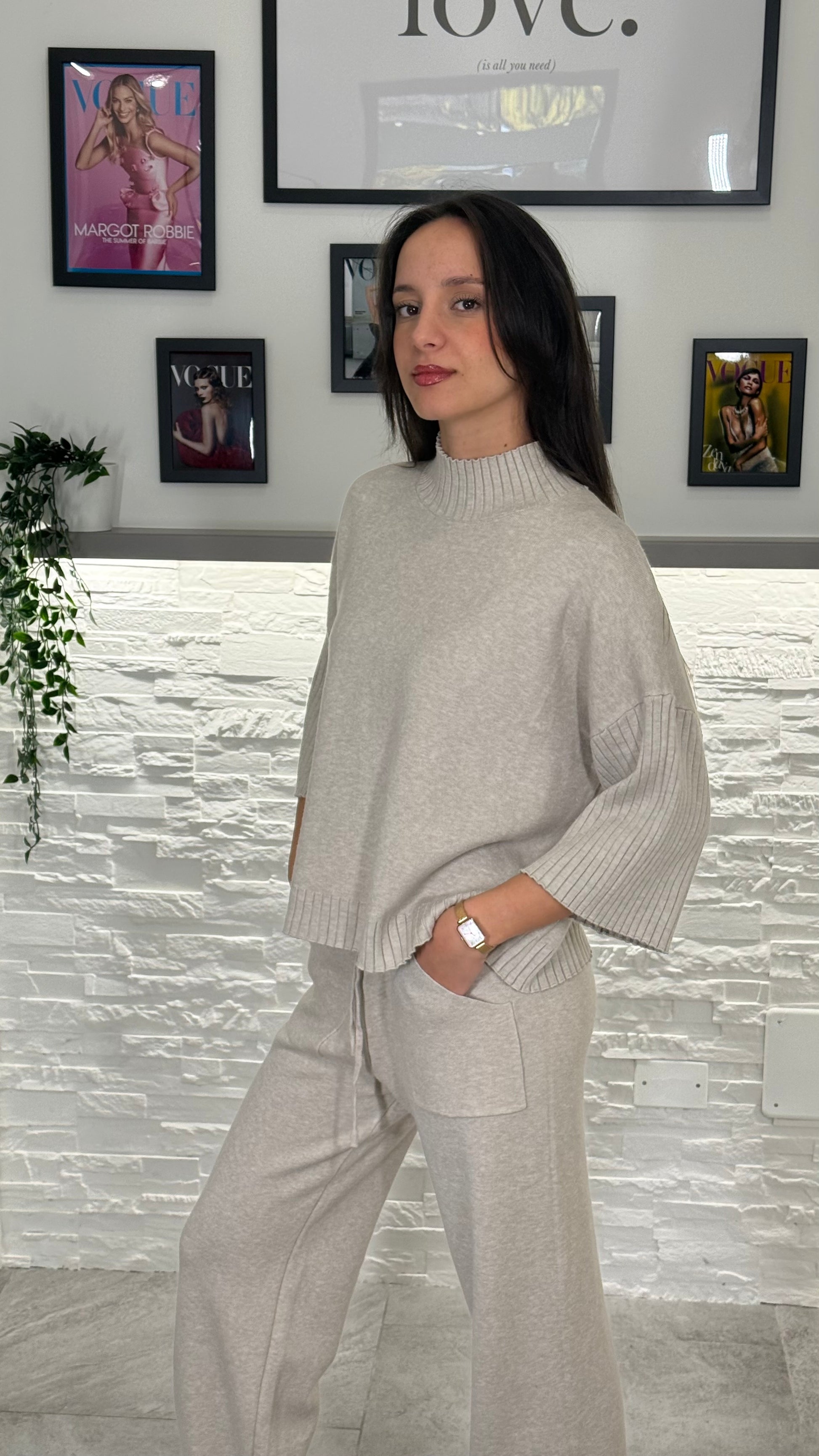 Tuta di maglia con dettagli a coste a rifinire il bordo.