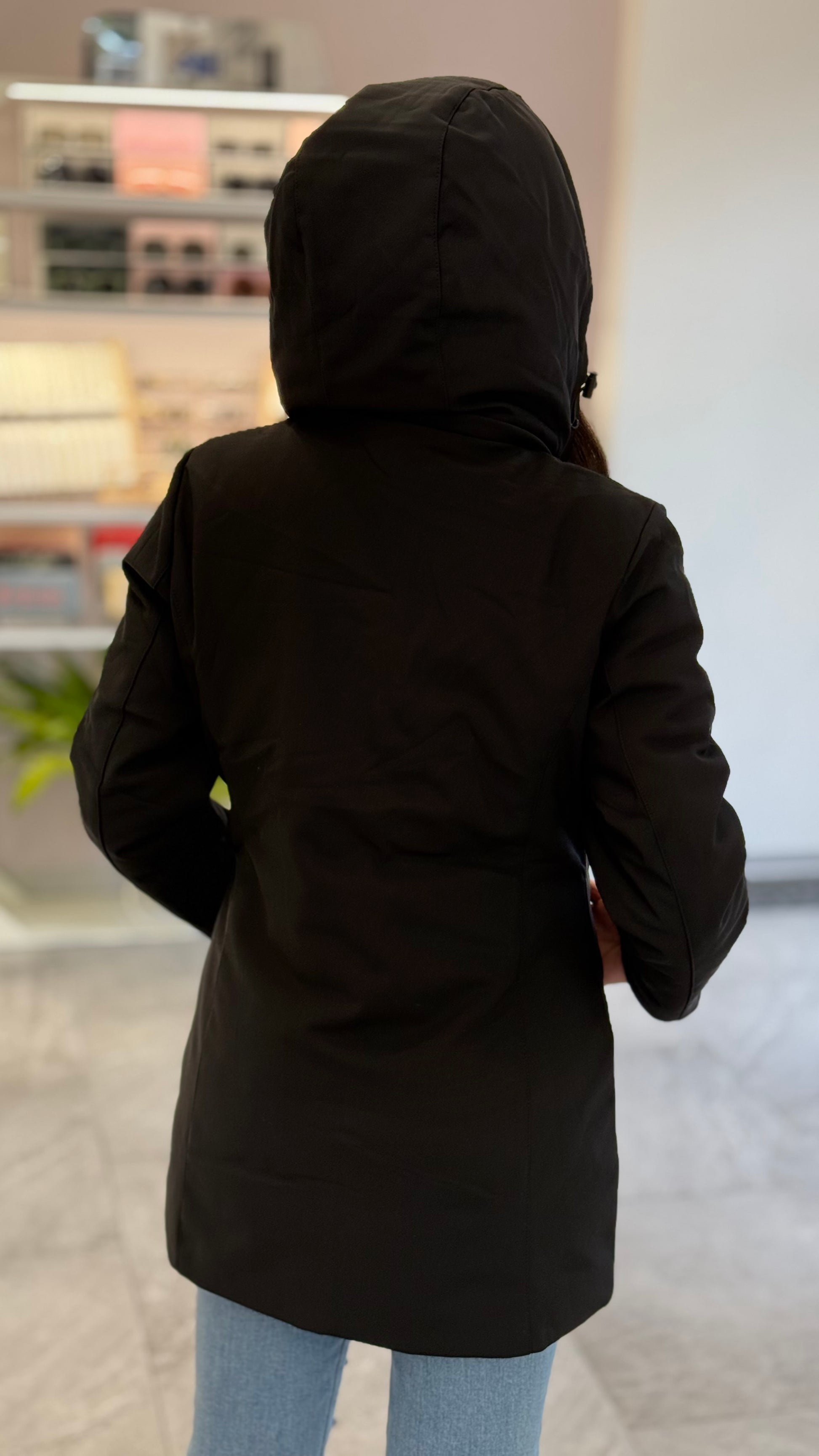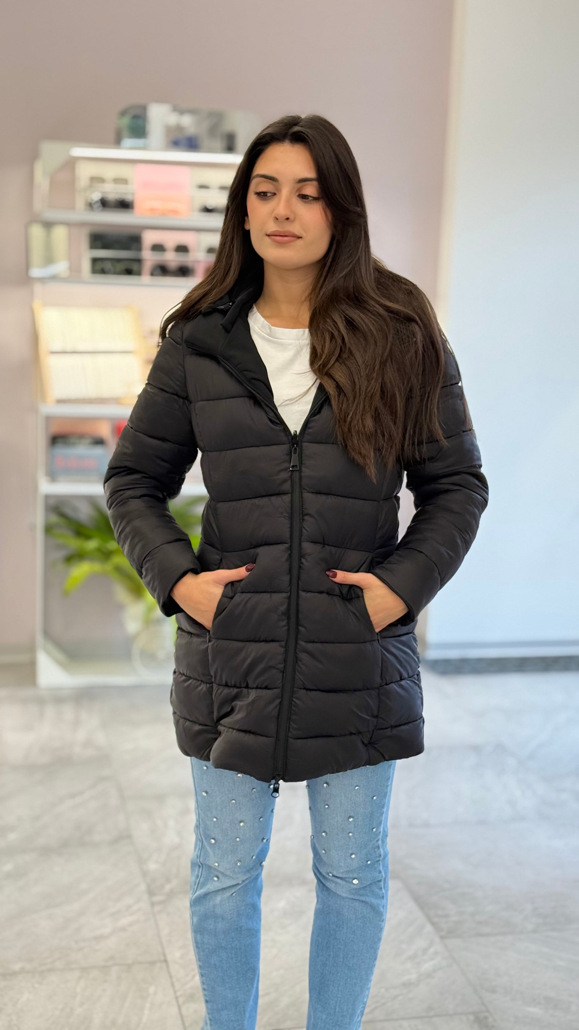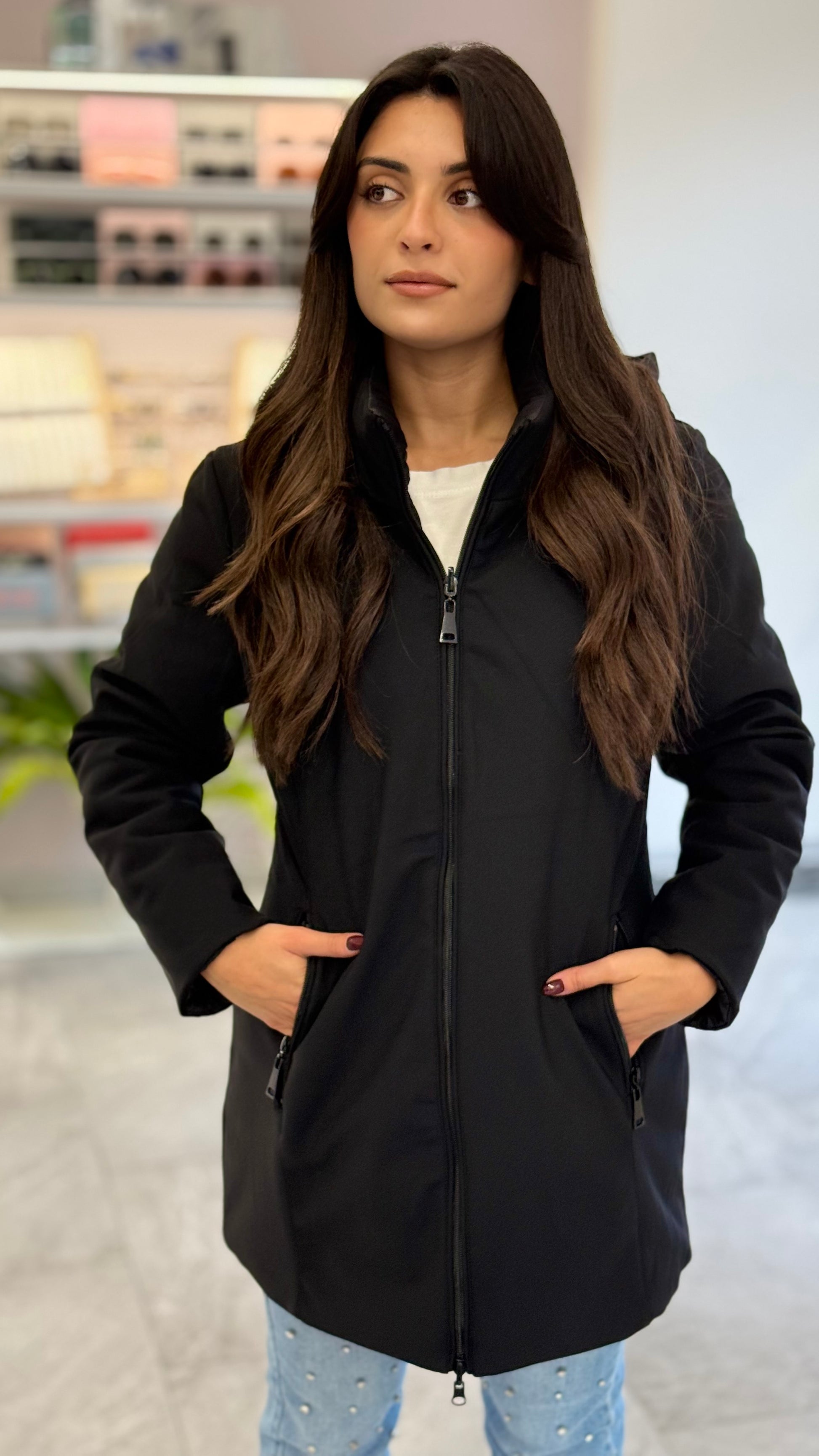 Piumino double face innovativo, caratterizzato da un lato in materiale tecnico idrorepellente e dall’altro con il classico stile trapuntato. Dotato di cappuccio REMOVIBILE e chiusura con zip, questo capo versatile unisce praticità e design moderno. Lunghezza media fino alla coscia, ideale per affrontare le giornate fredde con stile, sia in un contesto sportivo che urbano.