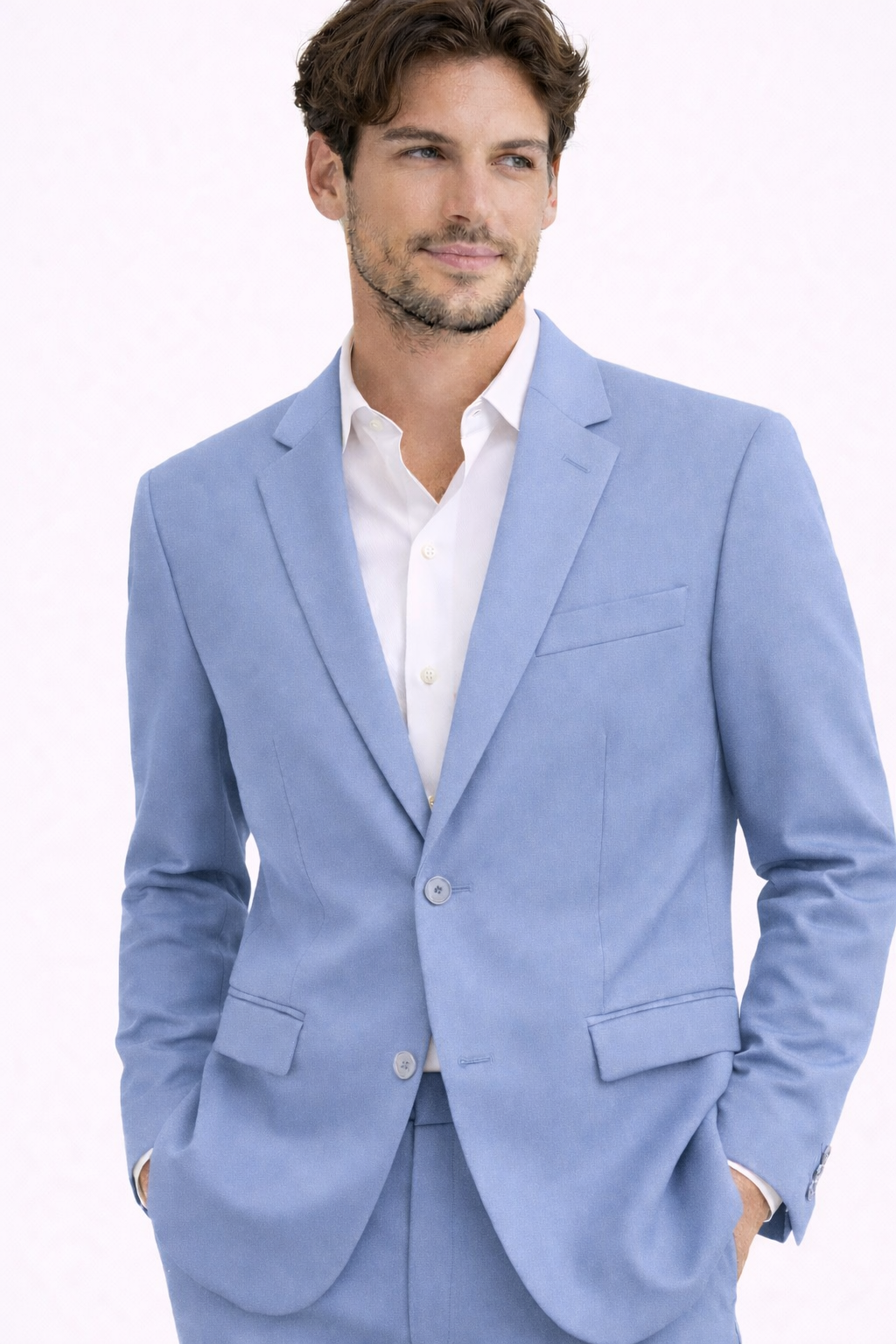 Giacca da uomo dal taglio moderno ed essenziale, proposta in una raffinata tonalità blu navy. Presenta colletto classico, chiusura a due bottoni scuri e tasche frontali con pattina, oltre al taschino sul petto per un tocco distintivo. La linea pulita e il fit contemporaneo la rendono ideale da indossare insieme ai pantaloni coordinati, creando un completo equilibrato e versatile, adatto sia a occasioni formali che a look smart casual.