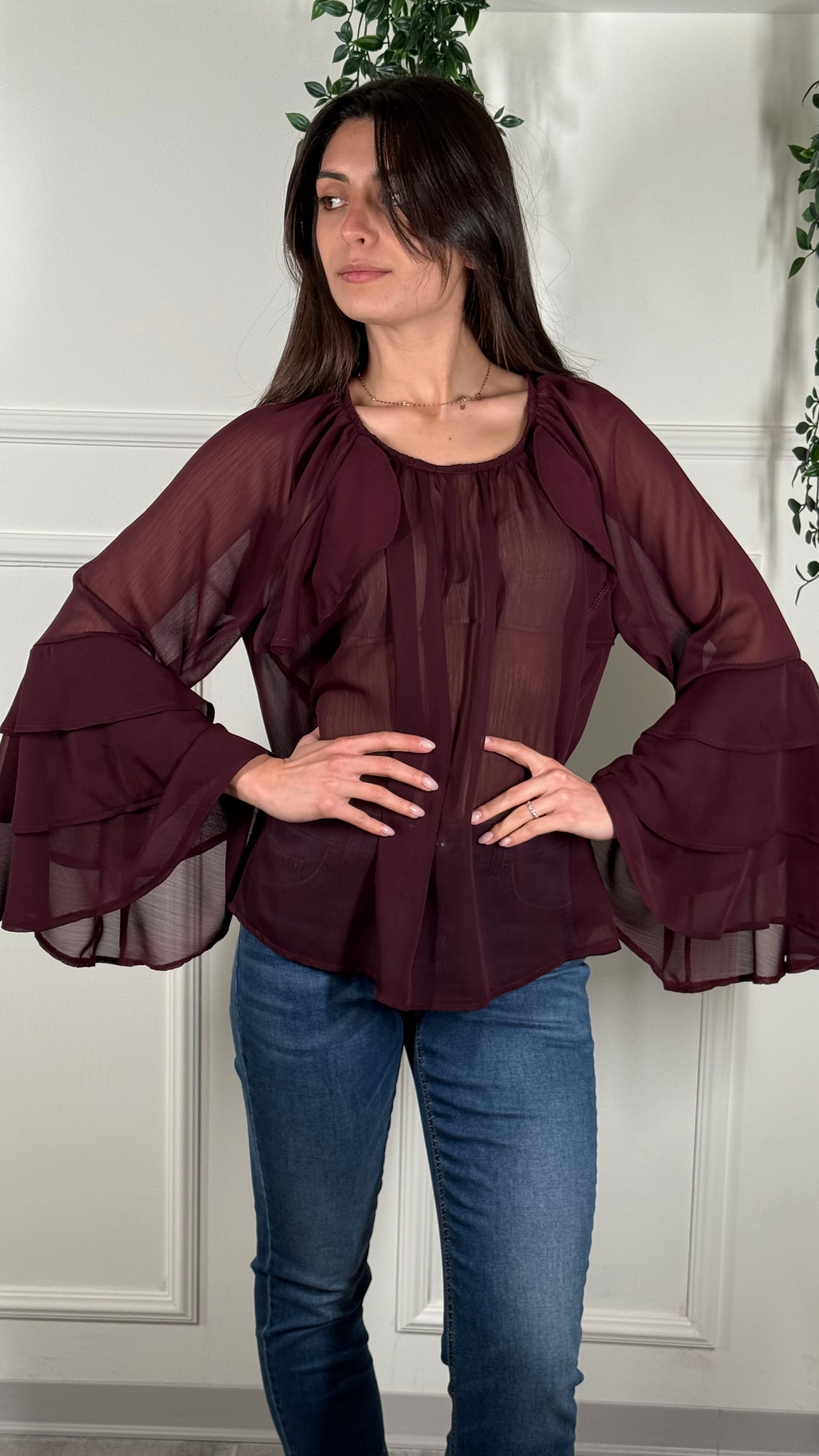 Blusa trasparente color vino manica ampia