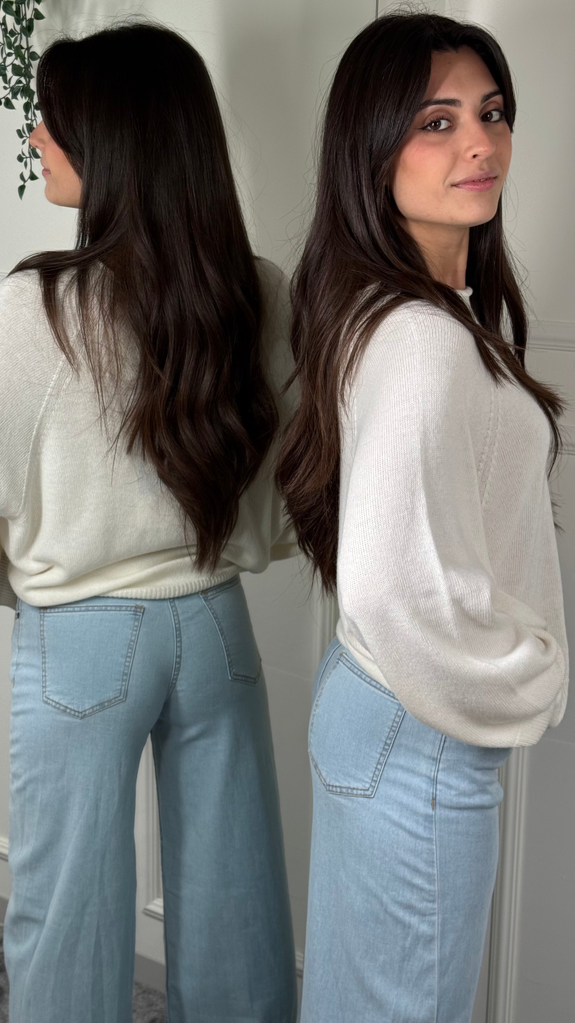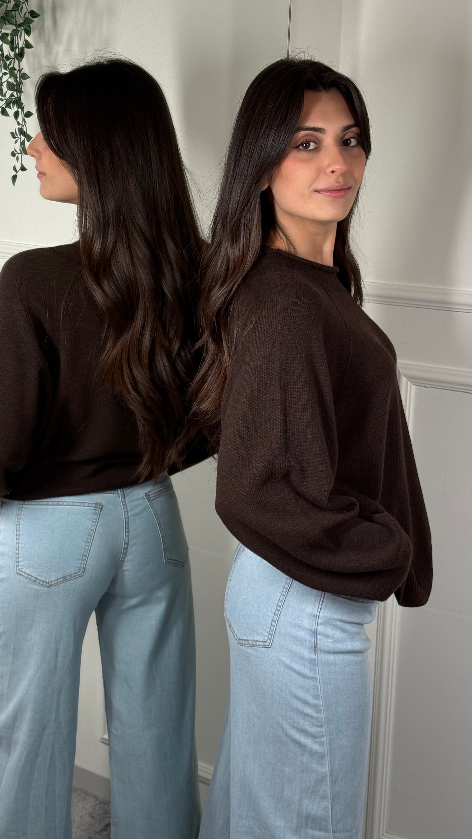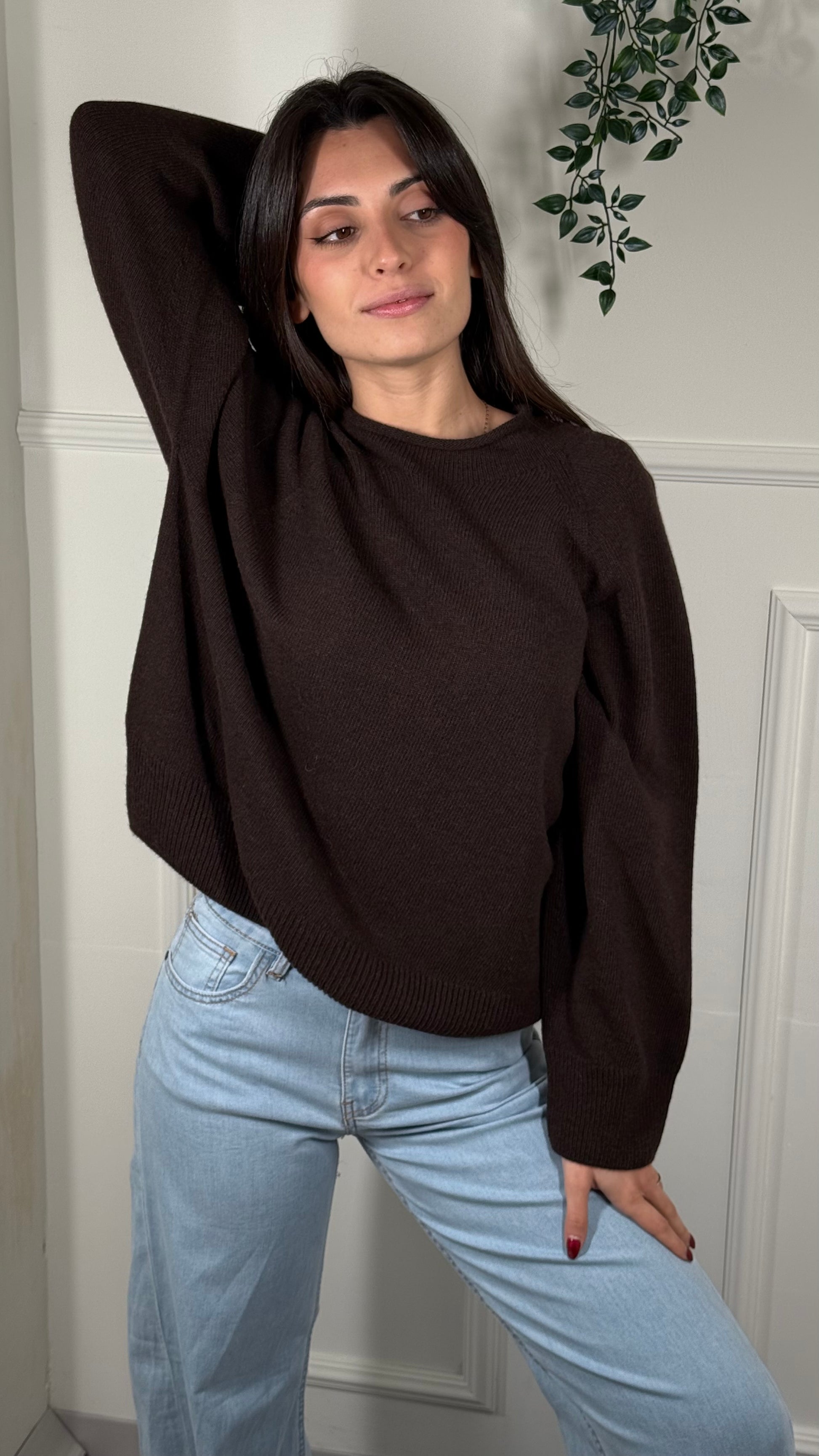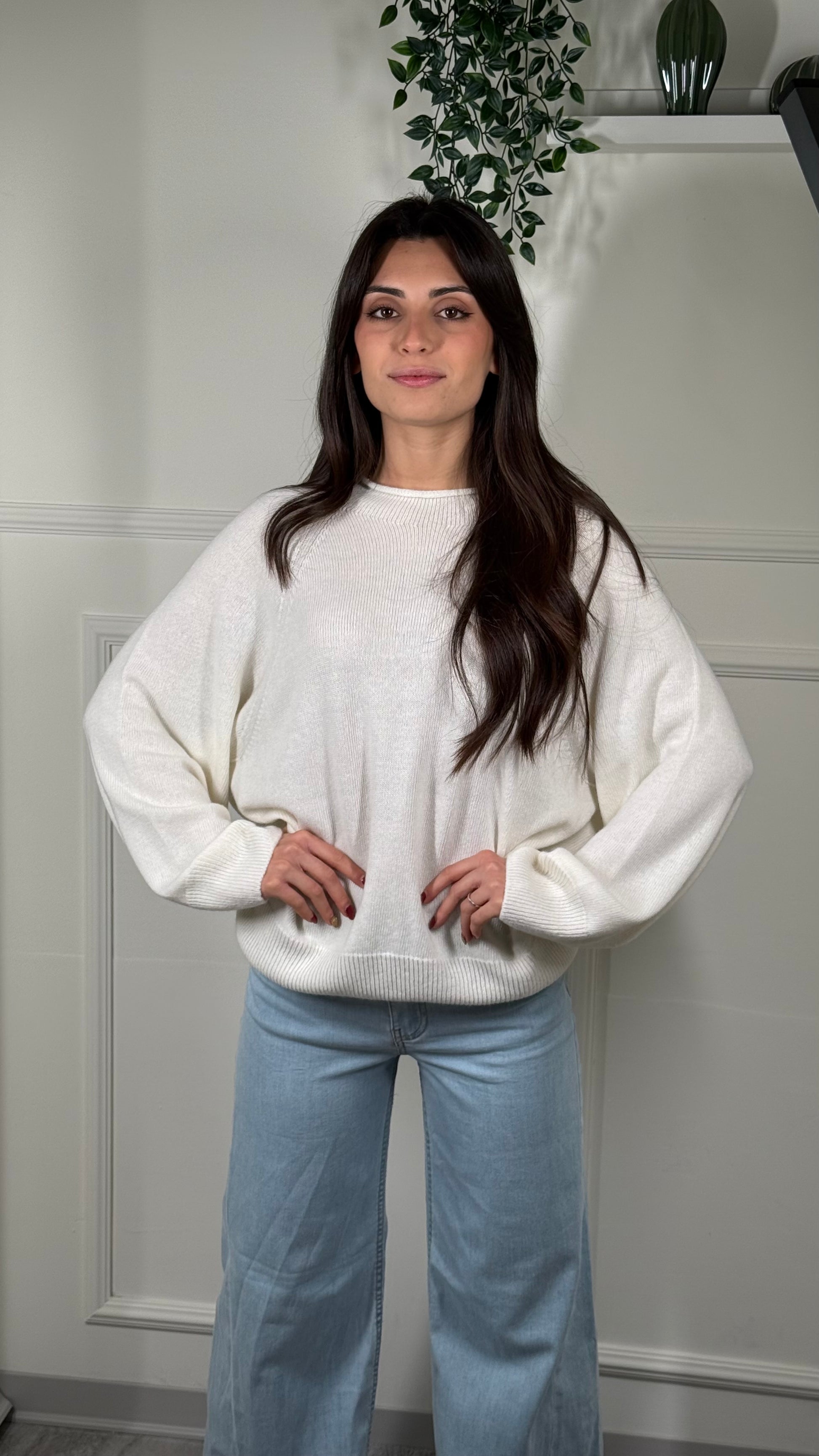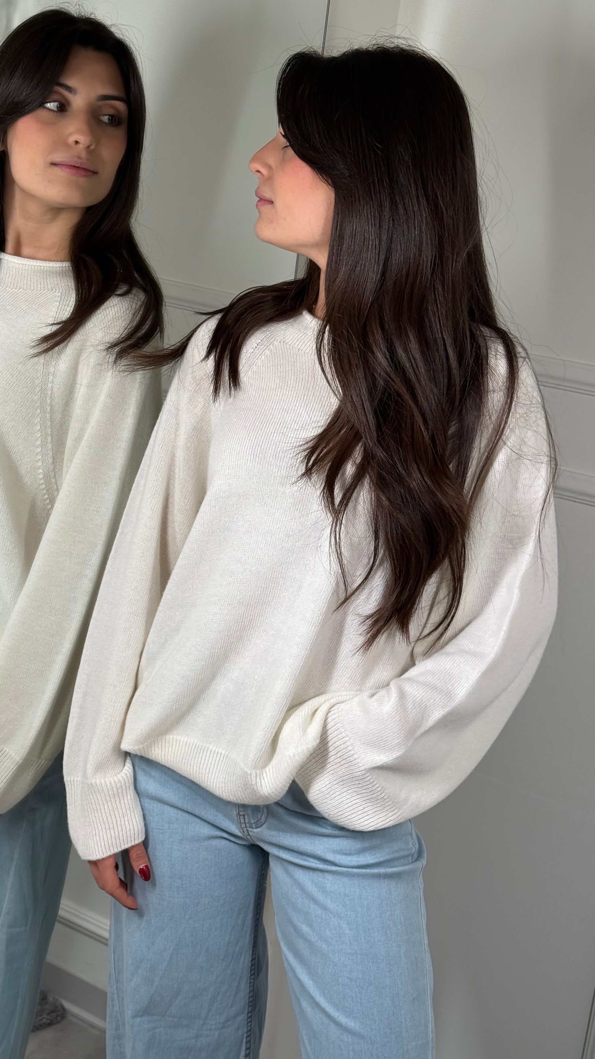 Maglia KONTATTO in morbida viscosa, caratterizzata da una vestibilità comoda e fluida. Girocollo Rotolino manica Raglan.