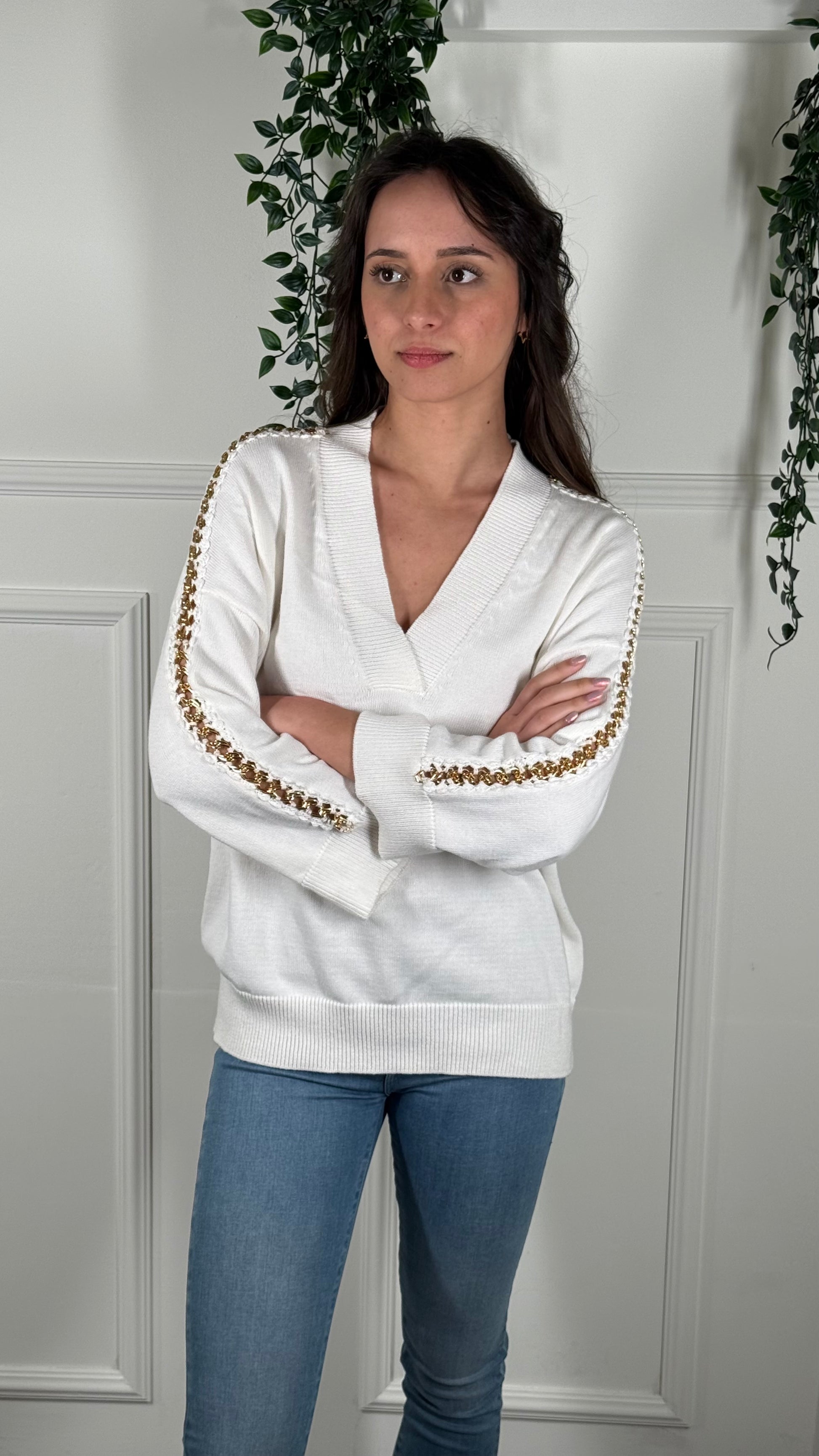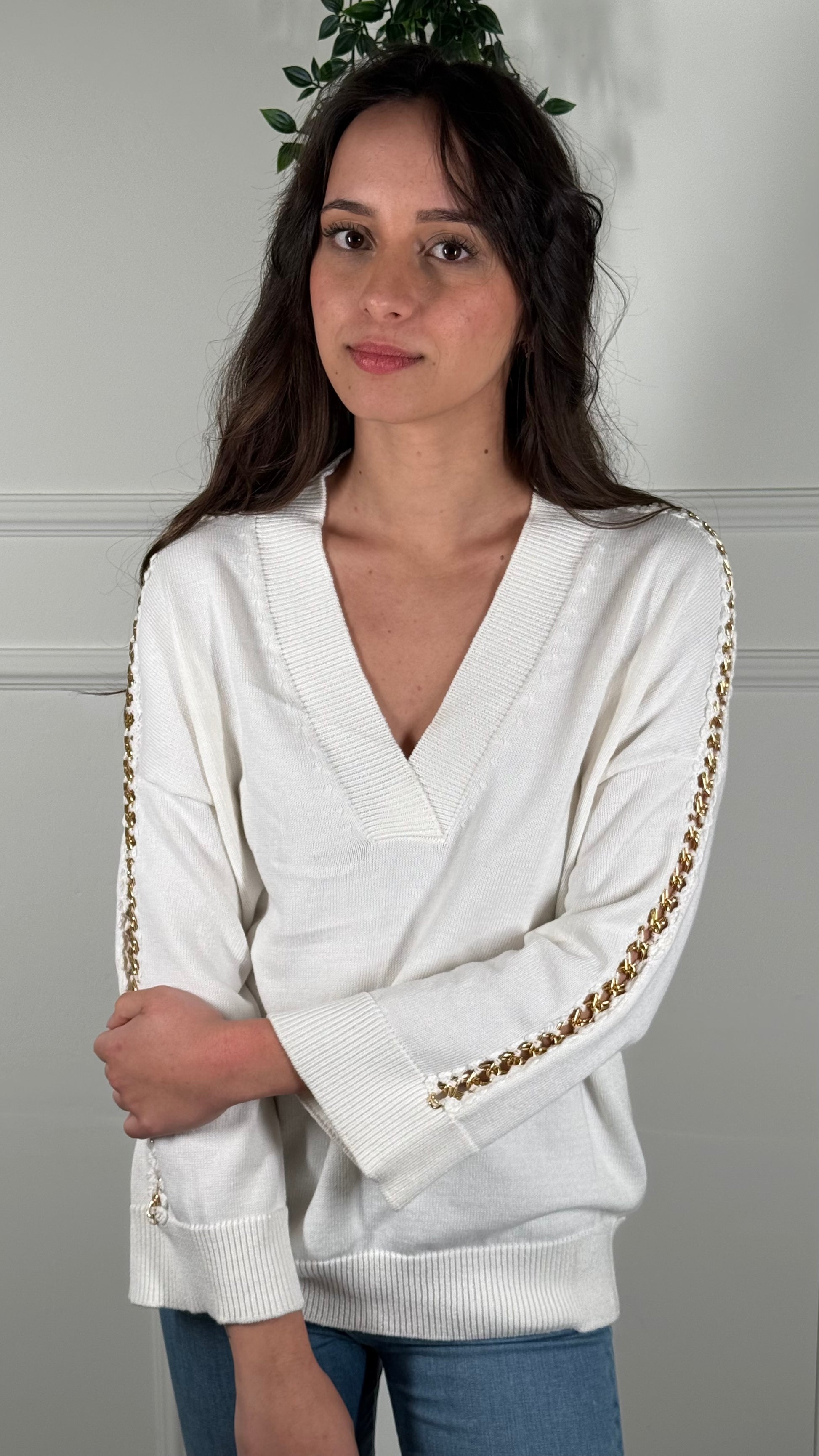 Maglia scollo a V con catenina maniche