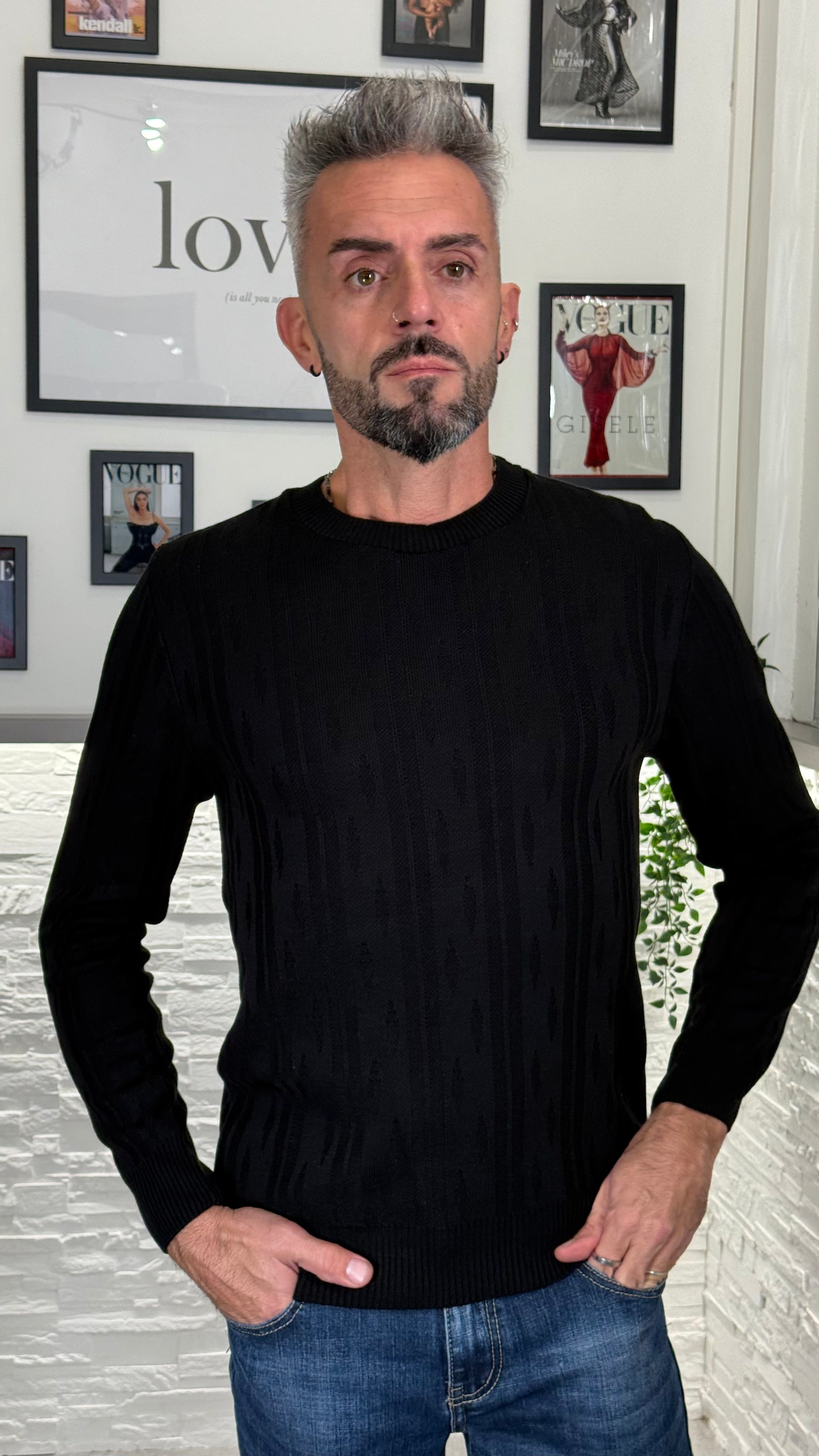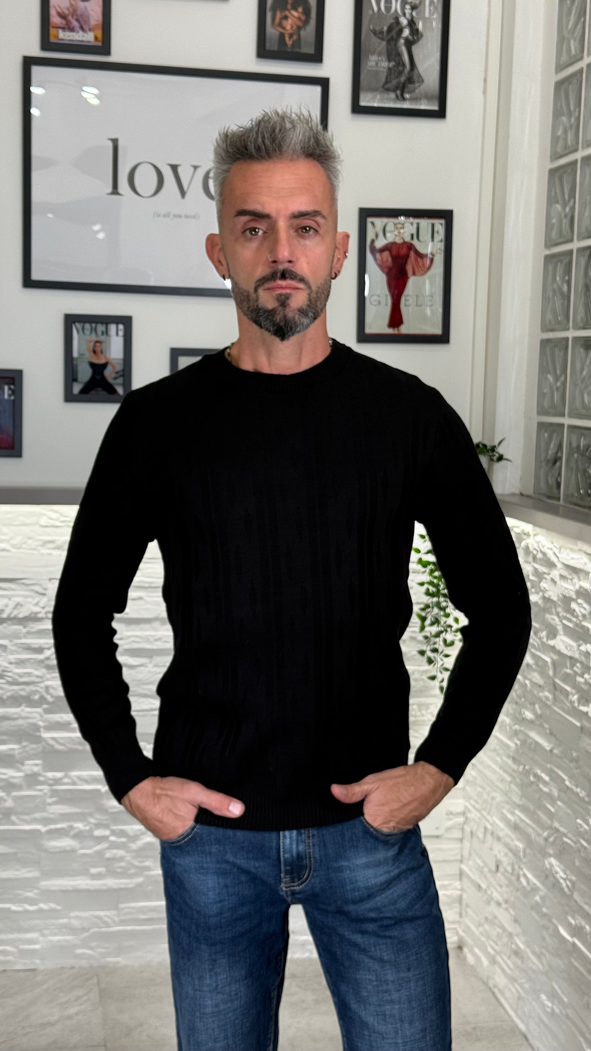 Maglione pari collo con inserti sulla trama. Perfetto con una t-shirt sotto o come sotto giacca