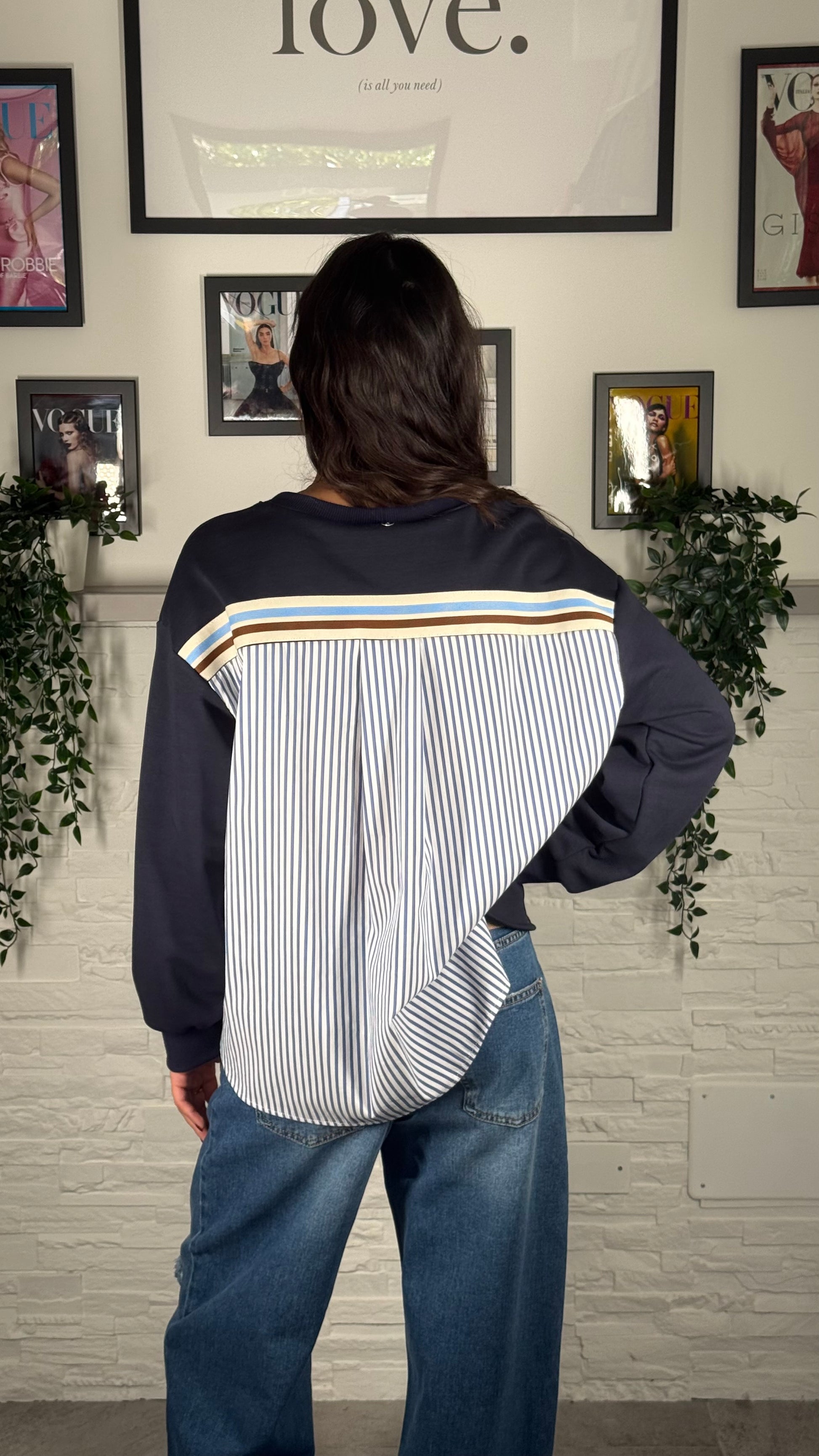 Felpa Over vestibilità fino alla L con retro di camicia