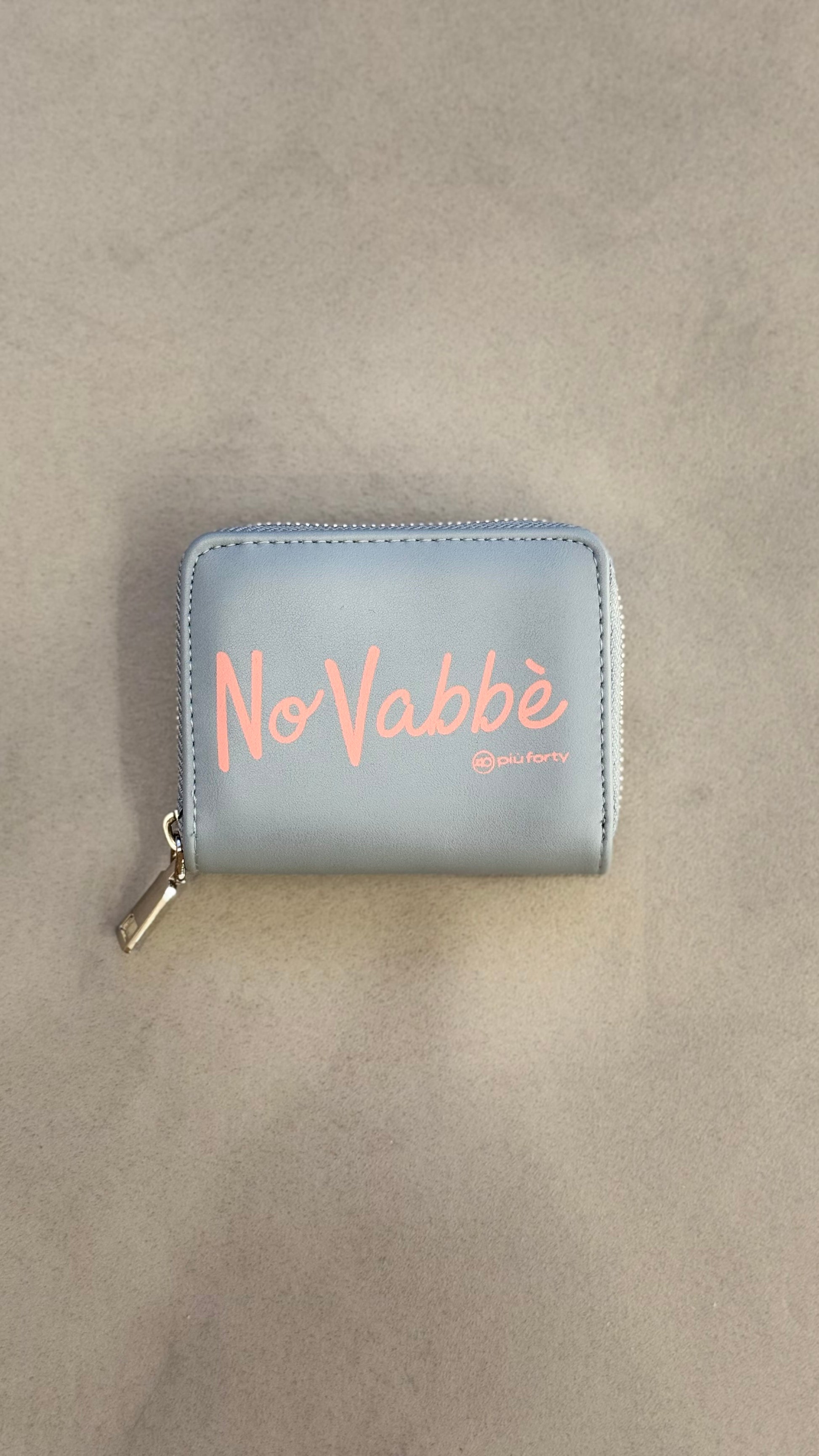 Portafoglio Ecopelle Celeste con scritta Rosa, misure 11cmx8cm, 4scompartimenti tessera e portamonete