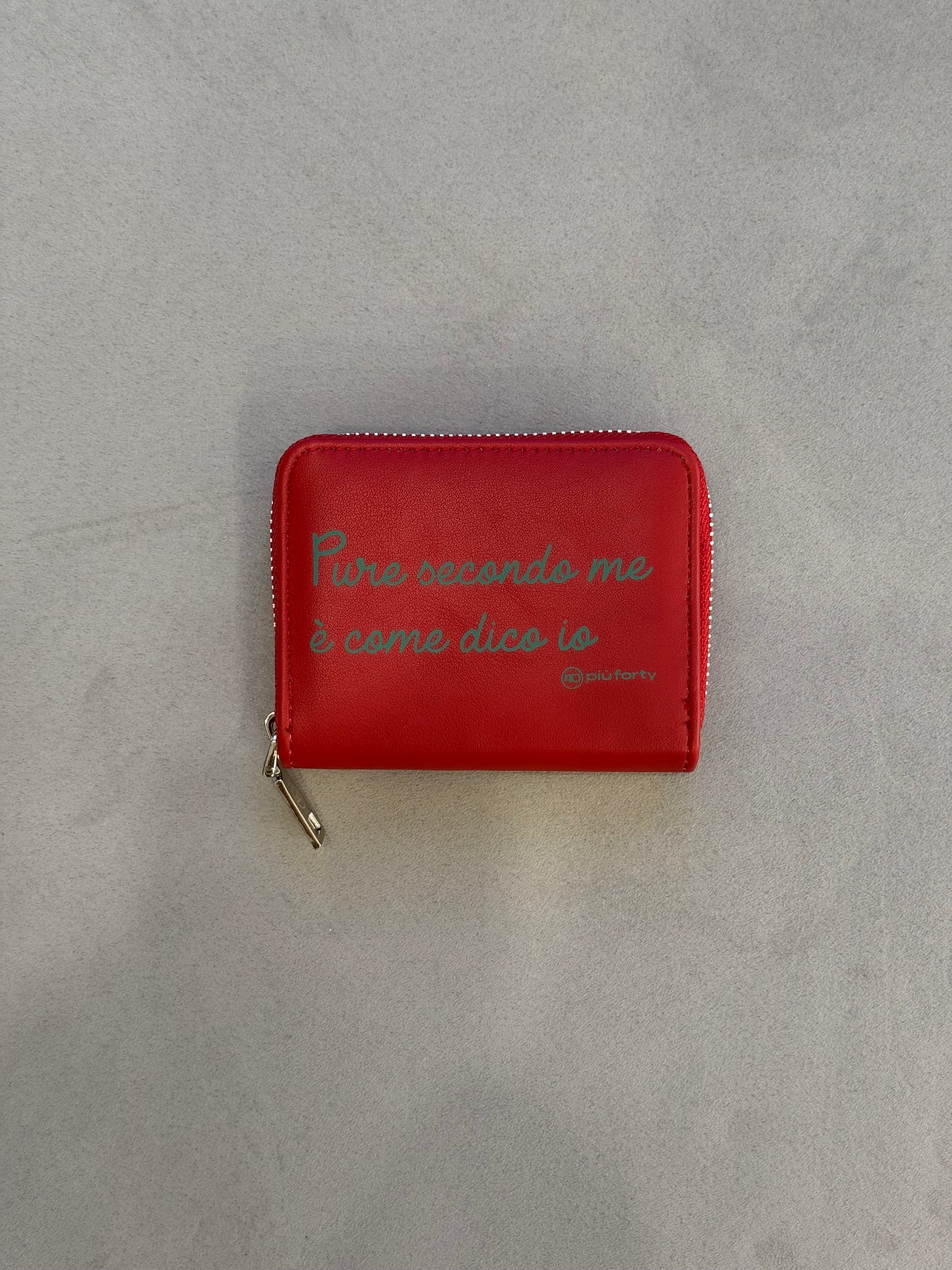 Portafoglio Ecopelle Rossa con scritta celeste, misure 11cmx8cm, 4scompartimenti tessera e portamonete