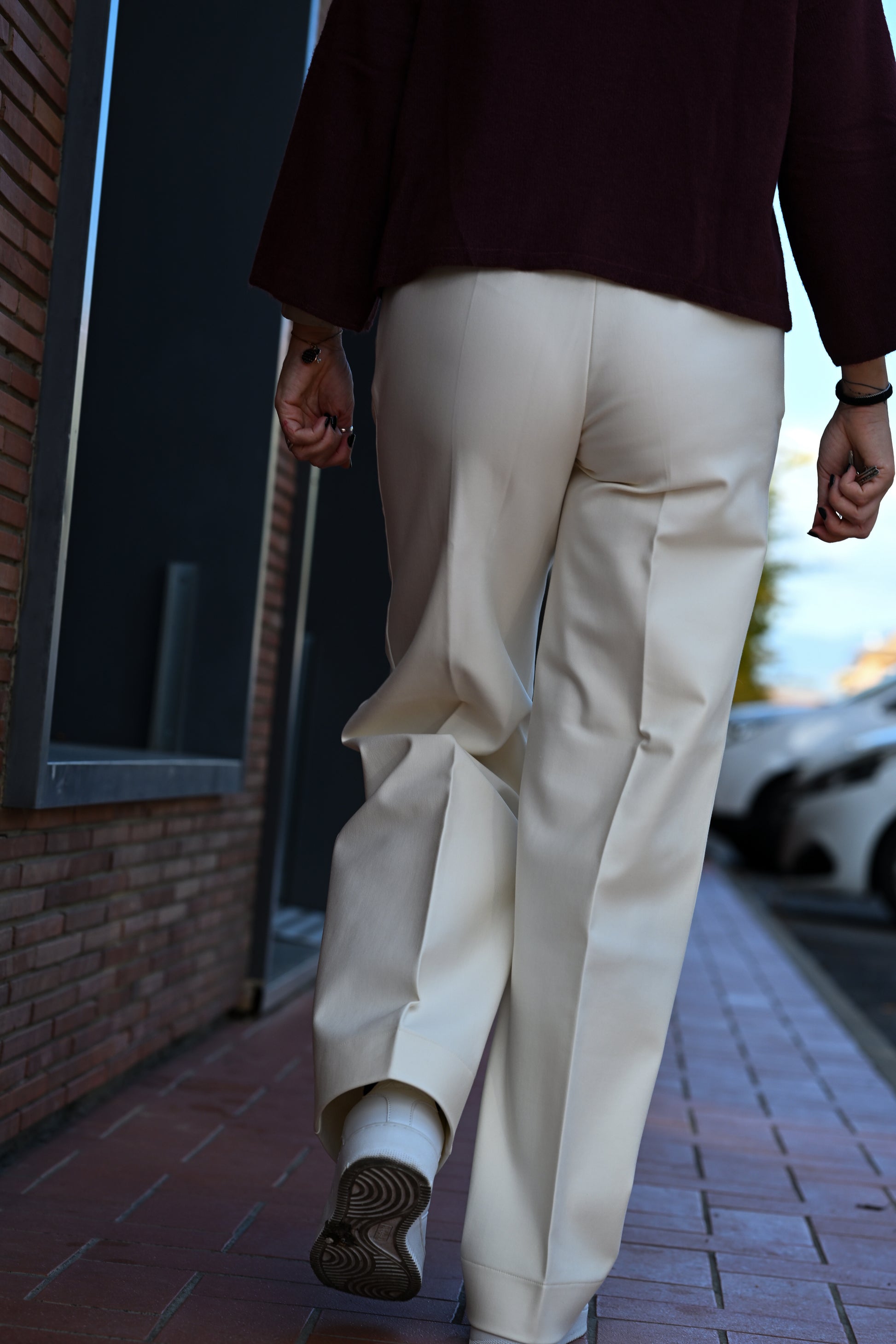 Il capo offre una combinazione perfetta di stile, comfort e praticità. Il taglio ampio dona un aspetto sofisticato ed elegante, permettendo al pantalone di scendere fluidamente lungo le gambe e offrendo una silhouette affascinante. La vita elasticizzata si adatta delicatamente al corpo, conferendo una vestibilità comoda e una forma aderente senza costringere.