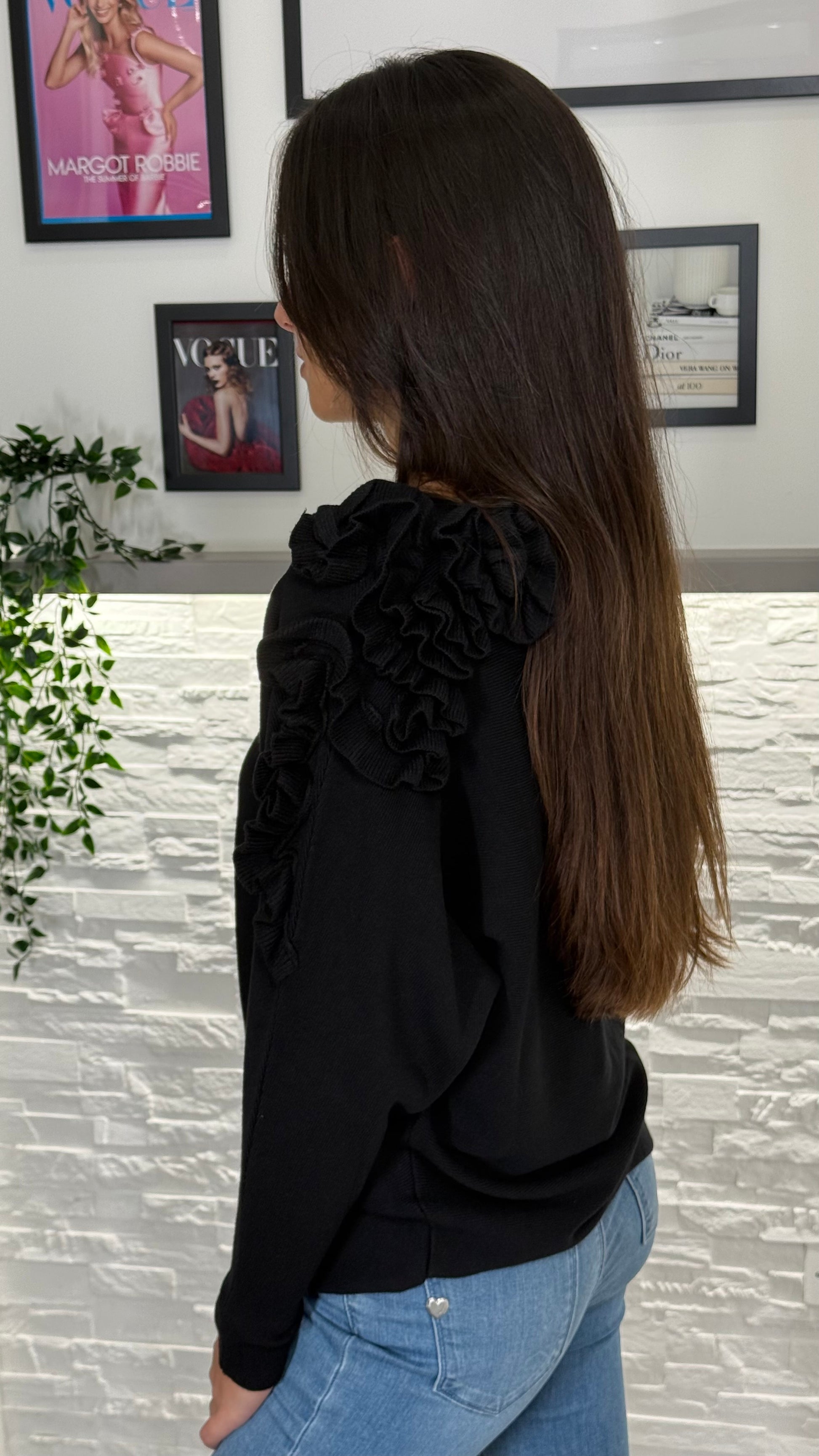 Maglioncino rinascimento con dettaglio fiore Fit pipistrello con vita stretta